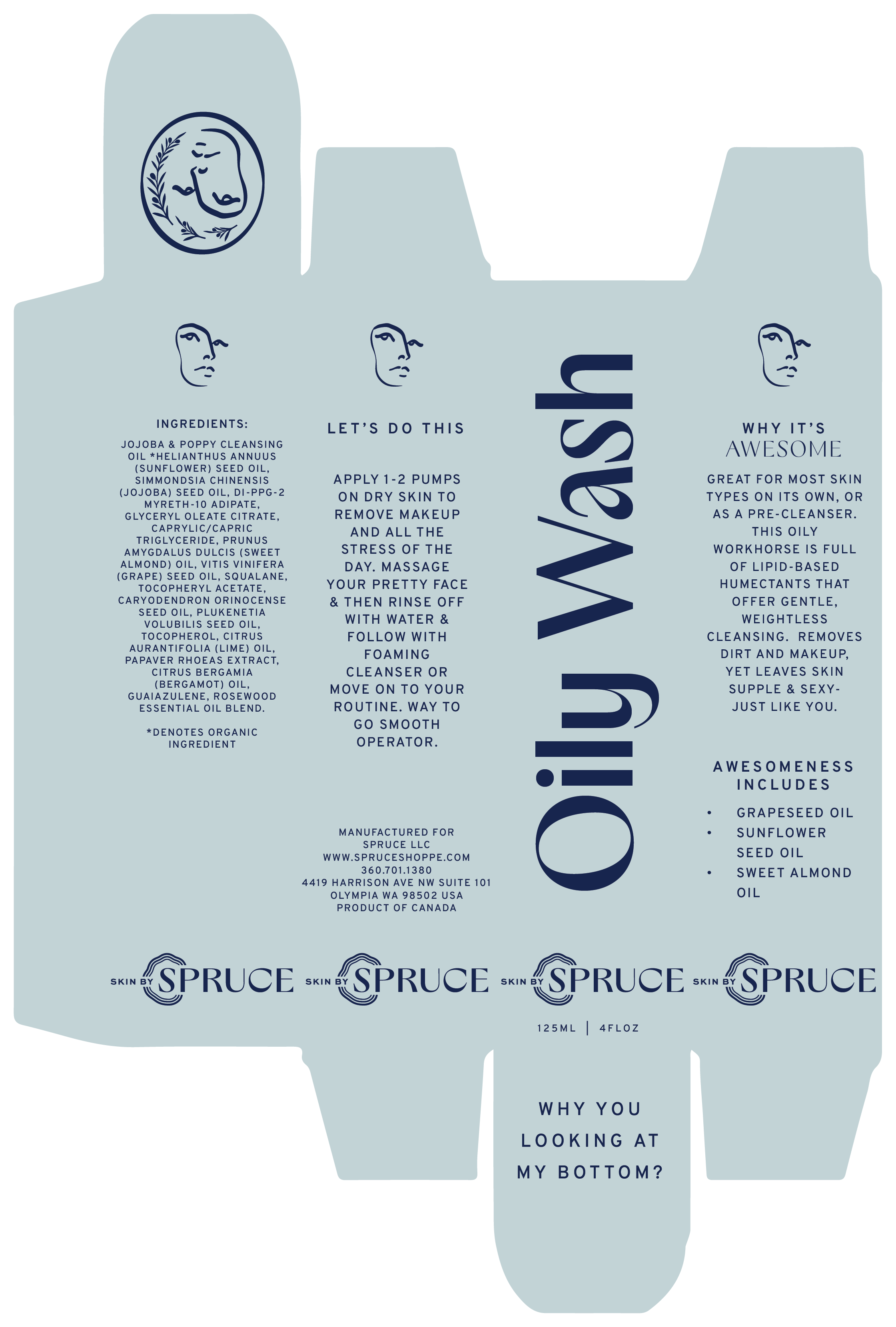 Spruce is a luxury spa located on the Westside of Olympia, Washington. Annie’s vision for her skincare line included organic, free-flowing shapes — incorporating rings from a tree, a nod to her heritage as the daughter of a lumberjack, as well as representing ripples, as in the way the business extends into the community.